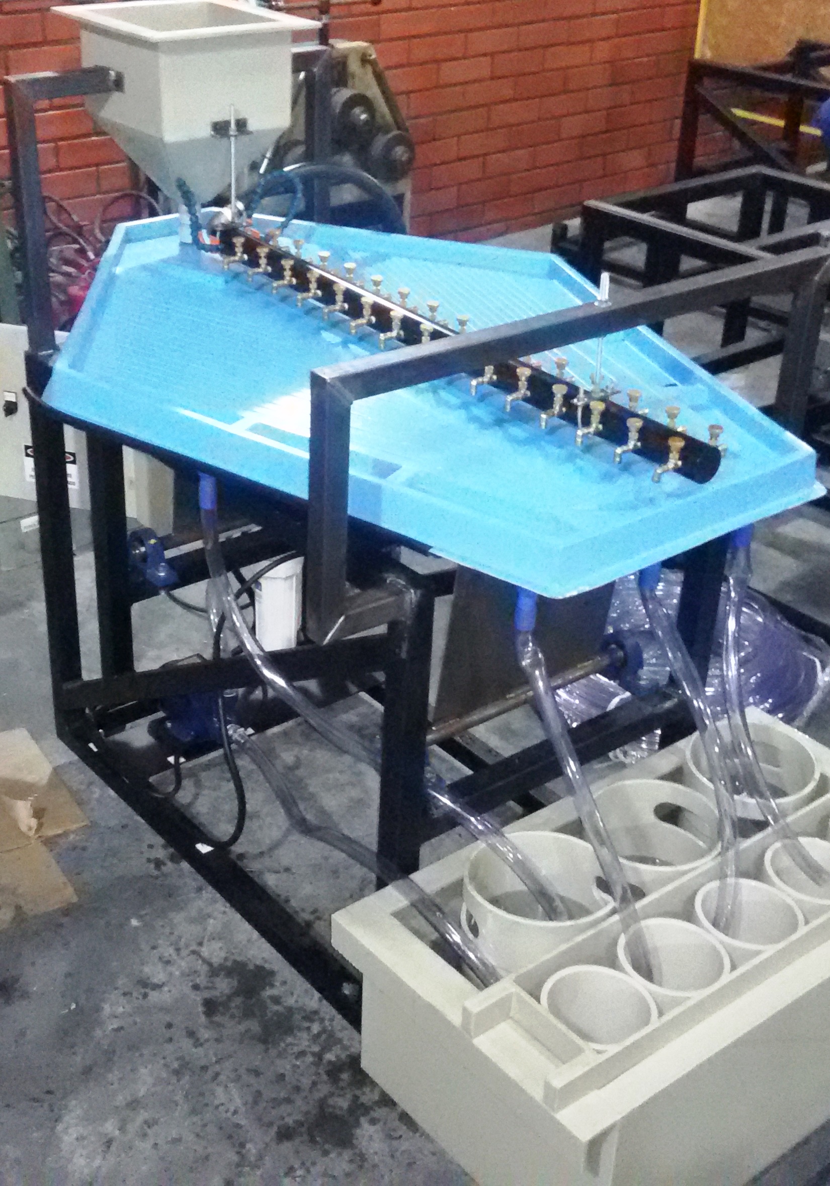 A Mesa separadora tem alto desempenho na recuperação de ouro fino, funciona pelo processo de separação por arrasto, separando o pesado (ouro) do mais leve (areia, argila);
